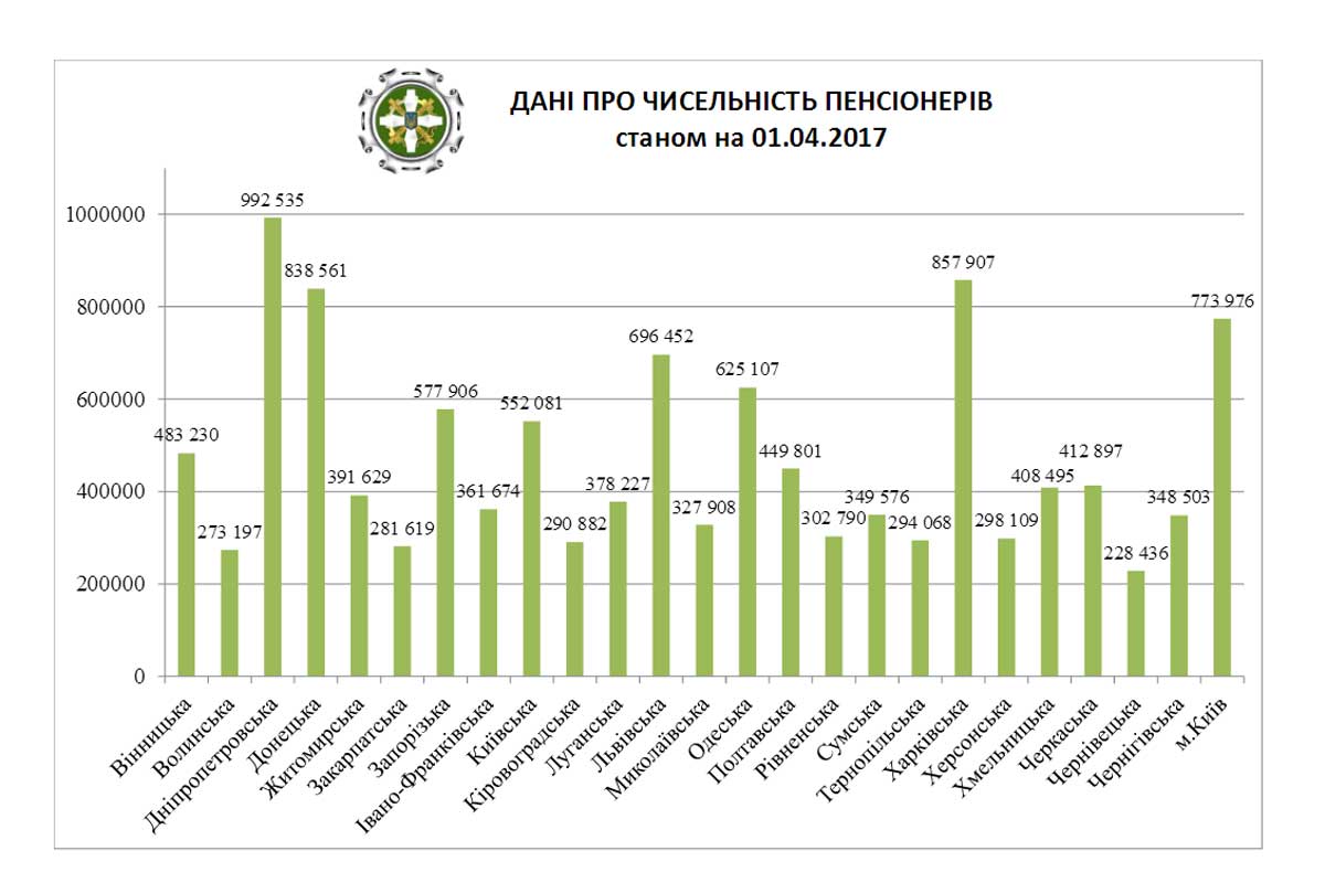 По количеству пенсионеров область на втором месте после Днепропетровской, где живет 992 тыс. 535 пенсионеров. На третьем месте – Донецкая область (838 тыс. 561 пенсионер).