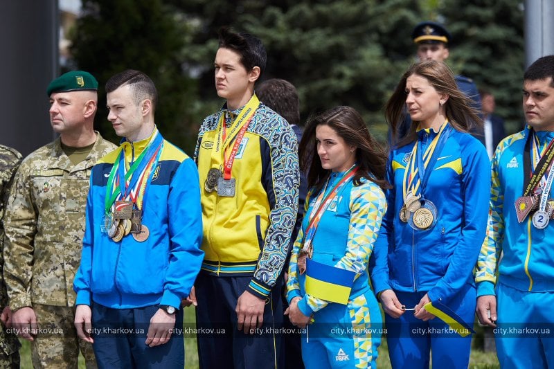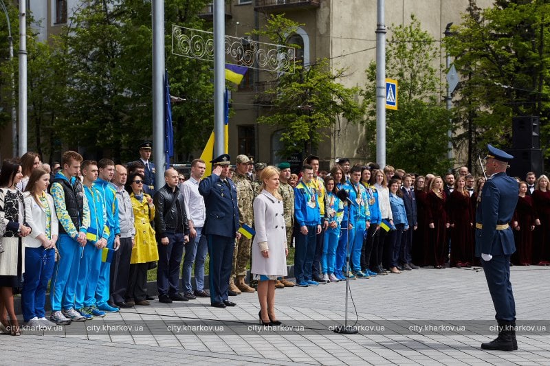 Как сообщили в офисе губернатора, в церемонии приняли участие руководители города и области, олимпийцы, творческие коллективы, участники АТО, бойцы Нацгвардии, харьковчане. Во время мероприятия на площади прошел парад.