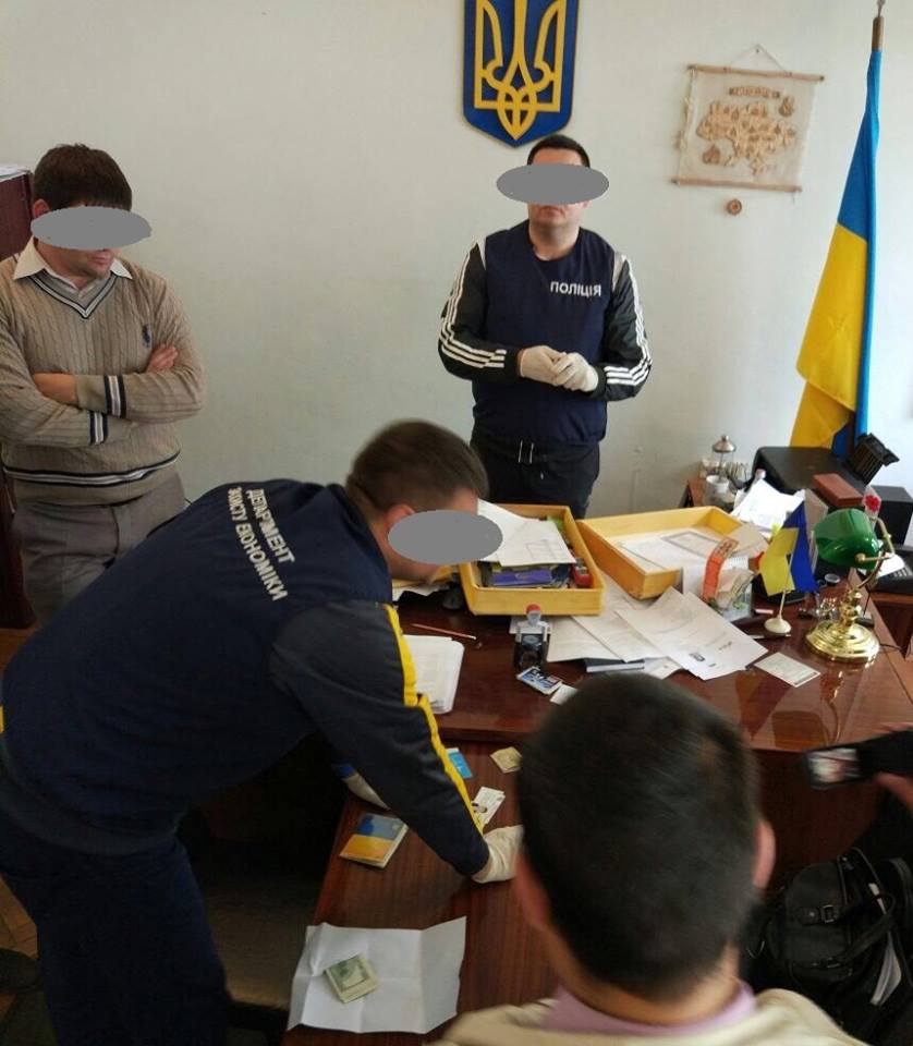 Вечером, сотрудники Департамента защиты экономики Нацполиции совместно с Прокуратурой - задержали с поличным злоумышленников по 208ст. - при передаче Главе и главспецу - очередного пакета-вознаграждения со взяткой 2300 $ за 2 га земли.