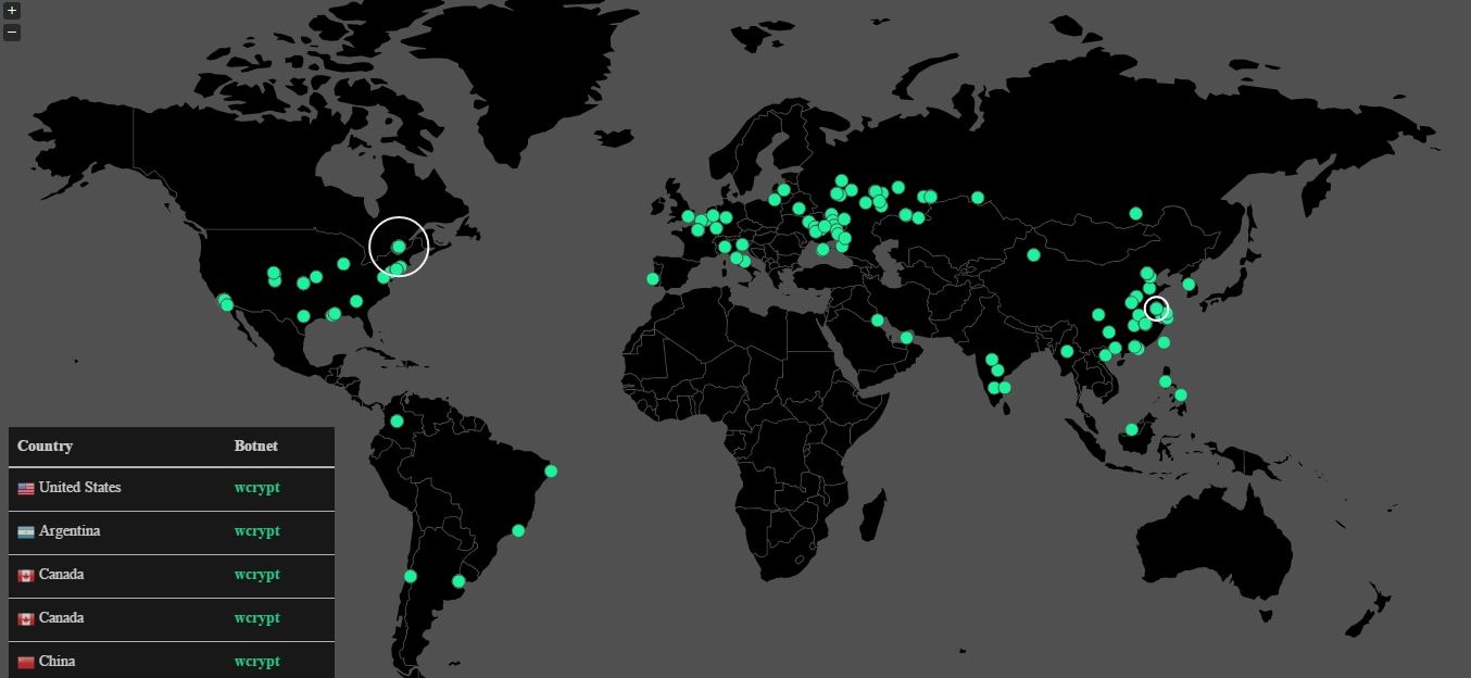 На карте видно, что заражение вредоносной программой охватило компьютеры в Европе (в том числе в Украине), Северной Америке, Южной Америке, Юго-Восточной Азии.