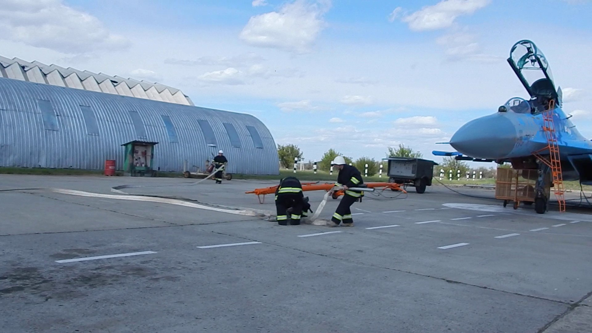 За словами тимчасово виконуючого обов’язки начальника служби пожежної безпеки авіабригади тактичної авіації старшого лейтенанта Ярослава Соколова, було відпрацьовано план бойової підготовки пожежного підрозділу частини, перевірено злагодженість дій особового складу пожежного взводу та чергових сил частини по гасінню умовної пожежі на газовочному майданчику, евакуація майна та техніки.