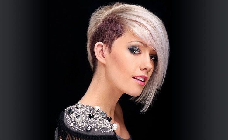 В причёске присутствуют длинная косая чёлка и ультракороткие волосы на затылке. Плавный переход длины ото лба до макушки завораживает.