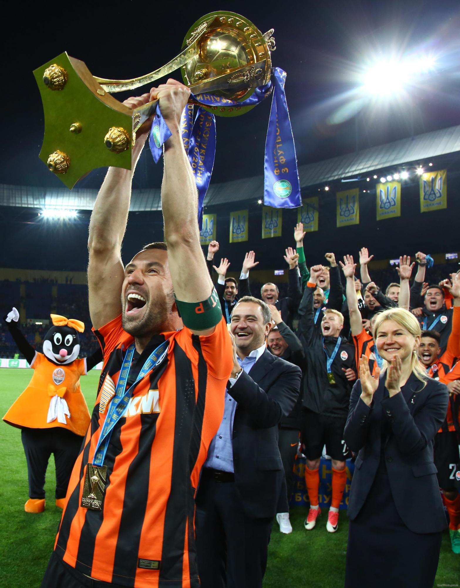 Кубок Украины победителю вручили глава ХОГА Юлия Светличная и президент ФФУ Андрей Павелко.
