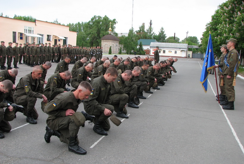 Урочисте шикування нацгвардійців проходило за усіма військовими традиціями. Обов'язковим ритуалом під час звільнення в запас є прощання з бойовим прапором частини.