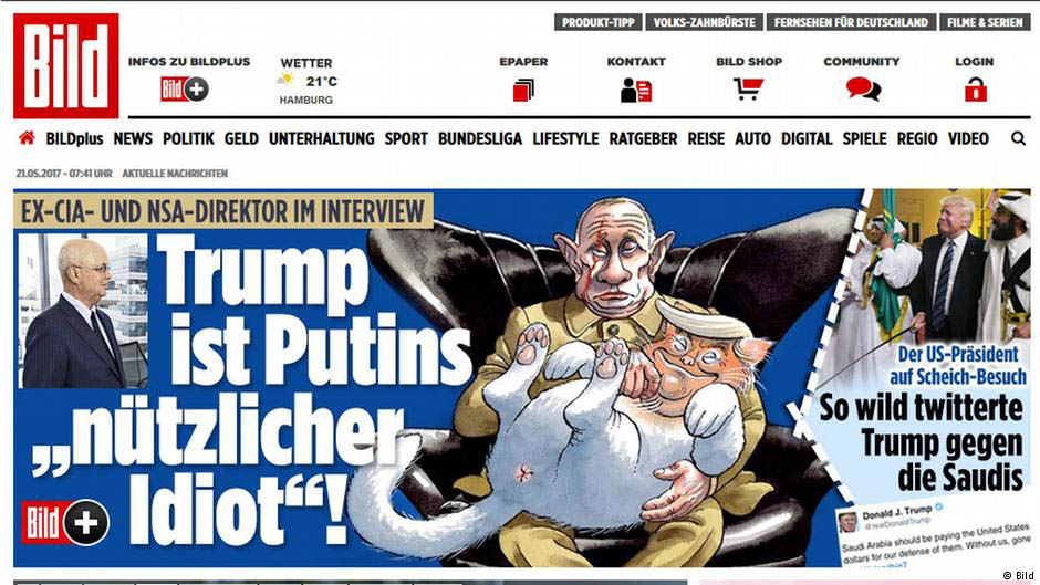 По словам Хейдена, в Кремле считают, что Трамп - "polezni durak". В Bild перевели это выражение на немецкий как "полезный идиот". Термин, возникший в западной политической лексике в период холодной войны, обозначает наивного человека с Запада, симпатизирующего Москве, но используемого ею в своих целях в качестве марионетки. Шесть месяцев спустя, указал бывший шеф ЦРУ, он с глубоким разочарованием вынужден констатировать, что это определение до сих пор является весьма подходящим для Трампа.
