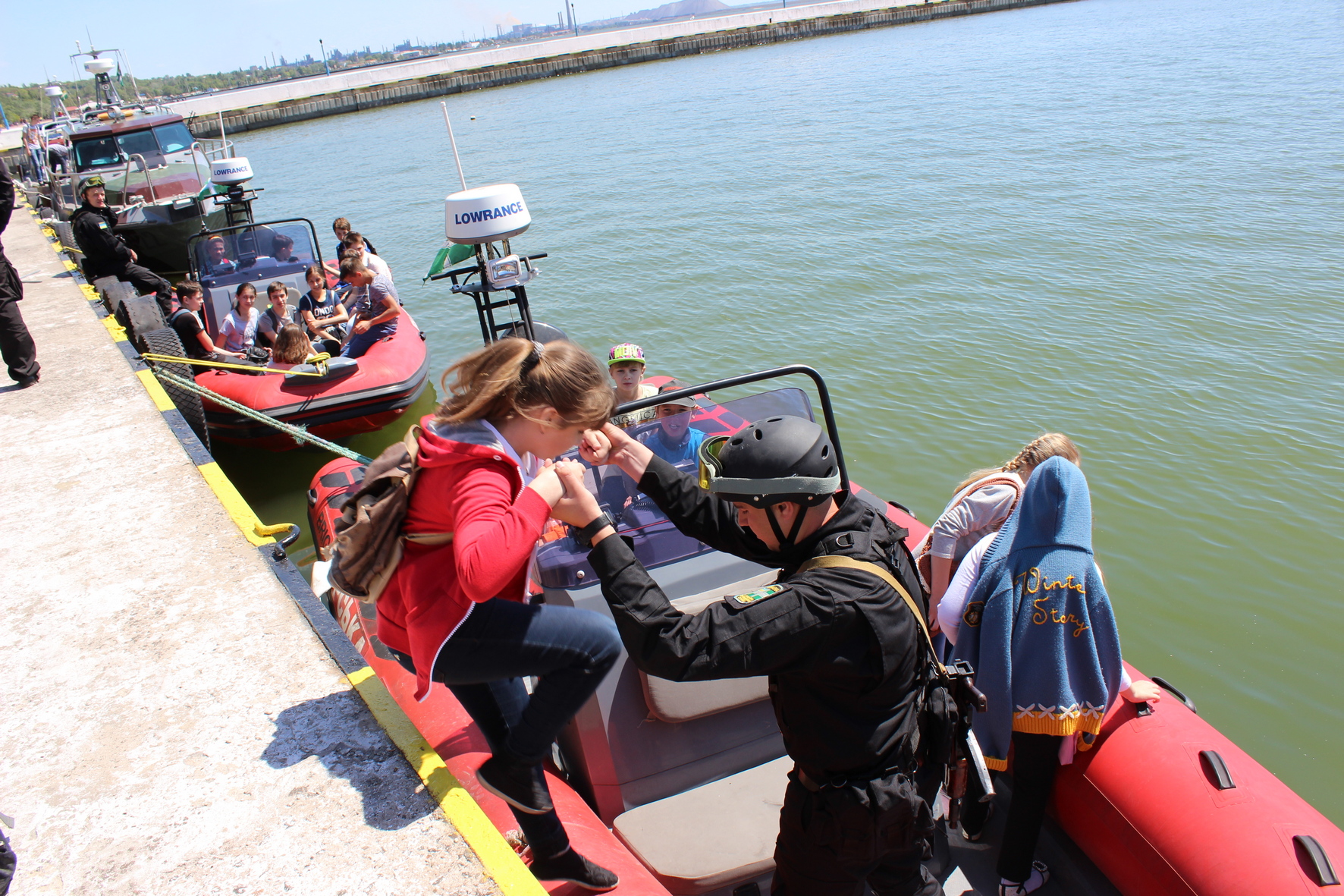 На базі Водної станції та корабельно-катерного складу військової частини прикордонники продемонстрували гостям зразки військової техніки та озброєння, водолазне обладнання для бійців відділу спеціальних дій на воді. Усі охочі могли вступити на борт прикордонних кораблів та катерів, побувати у відсіках, постояти за штурвалом. Словом відчути себе справжніми моряками-прикордонниками.
