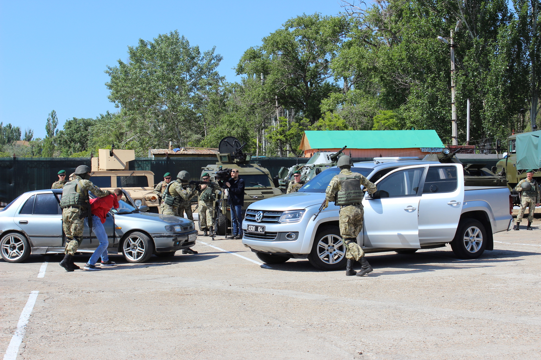 Сухопутну компоненту Державної прикордонної служби України представляли військовослужбовці Донецького прикордонного загону. Бійці мобільного підрозділу показали затримання порушника державного кордону. Присутні із захопленням спостерігали за вправними діями інструктора-кінолога та були в захваті від роботи його чотирилапого друга. Службовий собака виконував різноманітні команди свого господаря.