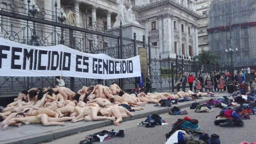 У здания Национального конгресса Аргентины группа феминисток FACC провела акцию протеста против насилия в отношении женщин.