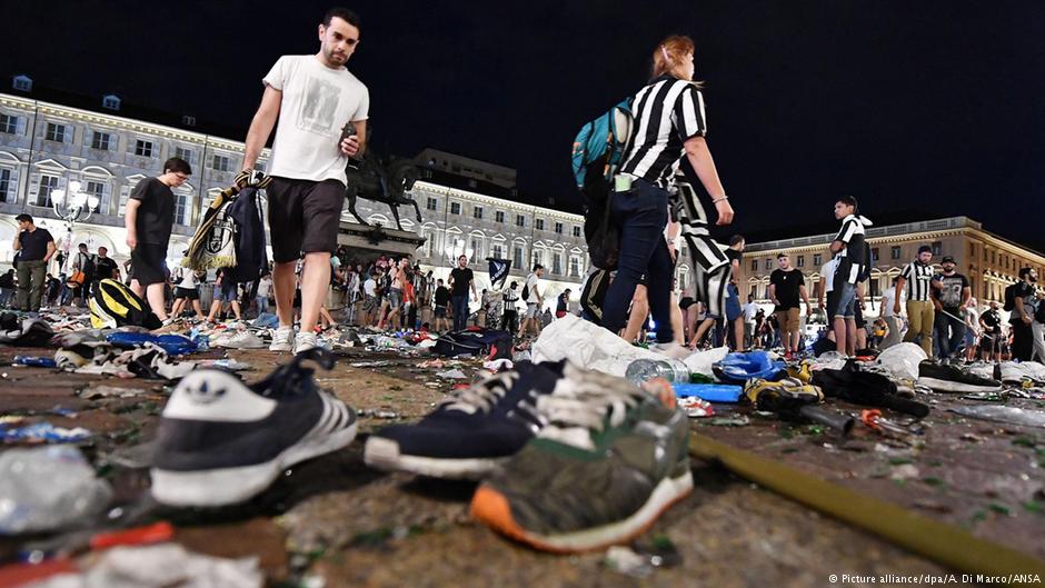 По сообщению корреспондентов агентства AFP, на площади Сан-Карло, где был установлен гигантский экран для трансляции матча в Кардиффе, за десять минут до конца игры взорвались несколько петард. Сразу после этого послышались крики, что взорвалась бомба. Это вызвало панику и массовую давку. В тот момент у экрана находились около 30 тысяч человек.