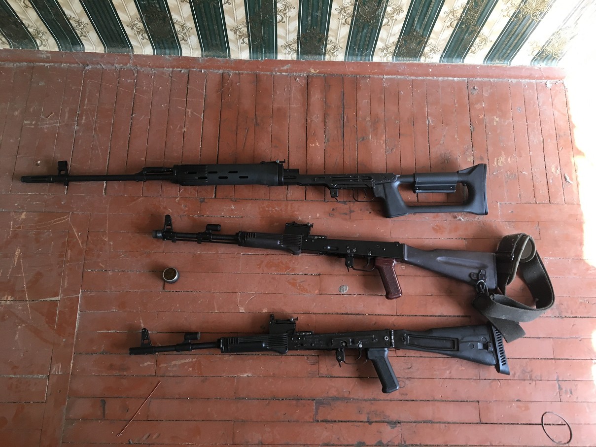 У схроні зберігалися снайперська гвинтівку СВД, два автомати Калашникова та три комплекти військової форми російського виробництва.