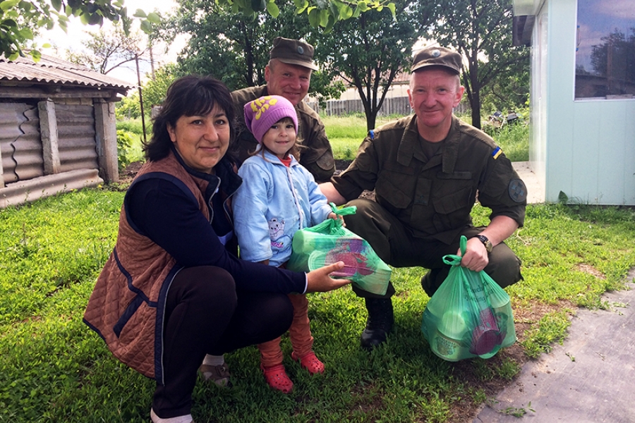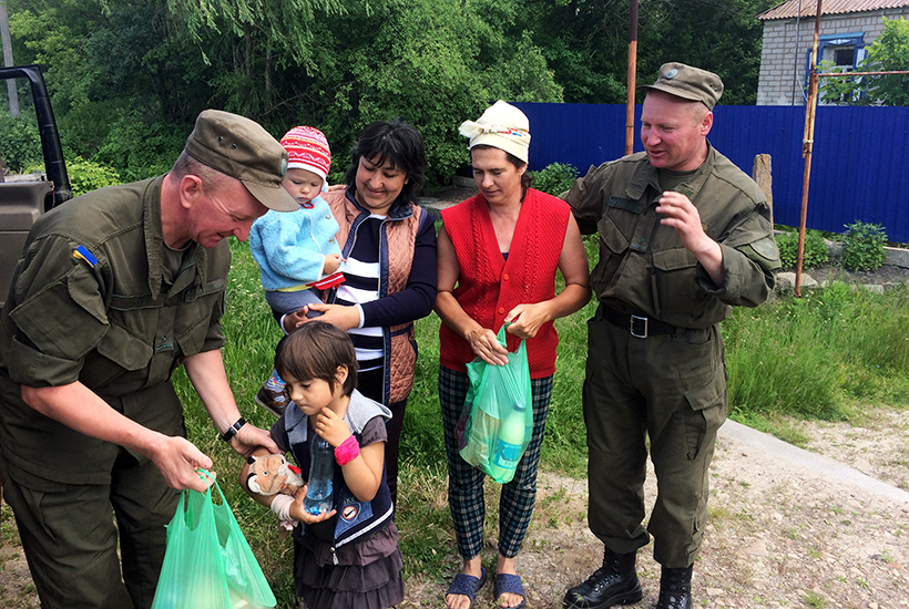 «Ми розуміємо, як необхідна підтримка людям, які проживають на сході країни та життю яких постійно загрожує небезпека, - розповідає заступник командира військової частини по роботі з особовим складом полковник Олександр Задворний. – Перебуваючи там, ми беремо на себе обов’язок захищати цих людей, і допомогти їм значно більше. Тому за підтримки волонтерів Львівщини ми постійно передаємо продуктові набори тим, хто потребує, максимальну увагу приділяємо багатодітним сім’ям, та людям похилого віку».