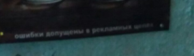 Как можно увидеть на снимке, в рекламной фразе без ошибок написано всего одно слово. Также на плакате есть сноска о том, что ошибки сделаны в рекламных целях.