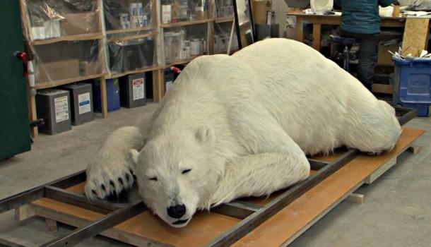 На создание первого искусственного животного потребовалось восемь месяцев. Специалисты решали, какие материалы лучше использовать. Не раз наведывались в токийский зоопарк и наблюдали за поведением белых медведей, фотографировали их.
