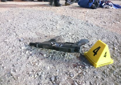 Один из нападавших попытался открыть по полицейским огонь из имевшегося в его распоряжении самодельного пистолета-пулемета типа "Карло" (контрафактный "Карл-Густав"). Трое других были вооружены ножами.