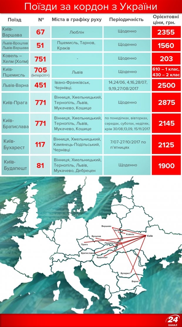 Также ежедневный поезд №51 из Львова довезет вас до Пшемышля, Тарнова, Кракова и Вроцлава. А беспересадочный вагон этого же поезда курсирует в Варшаву.