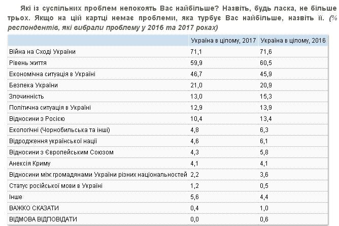 "Также среди проблем, которые больше всего беспокоят украинцев - уровень жизни (60%), экономическая ситуация (47%) и безопасность (21%)", - говорится в сообщении.