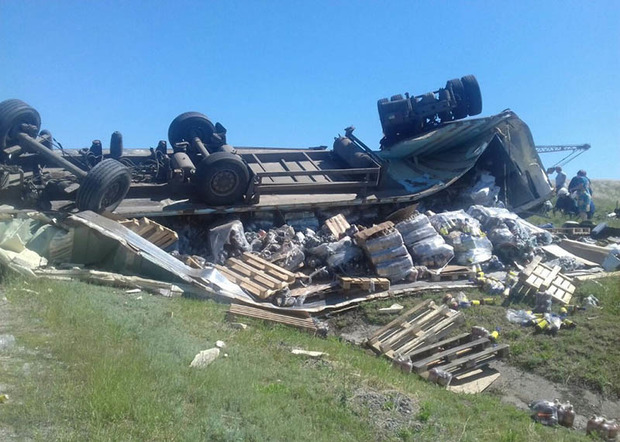 Сообщается, что из раскуроченного полуприцепа фуры высыпались паллеты с пивом. Местные жители и проезжающие автолюбители бросились растаскивать упаковки с алкогольным напитком, несмотря на то, что пострадавший напарник водителя как мог охранял груз.