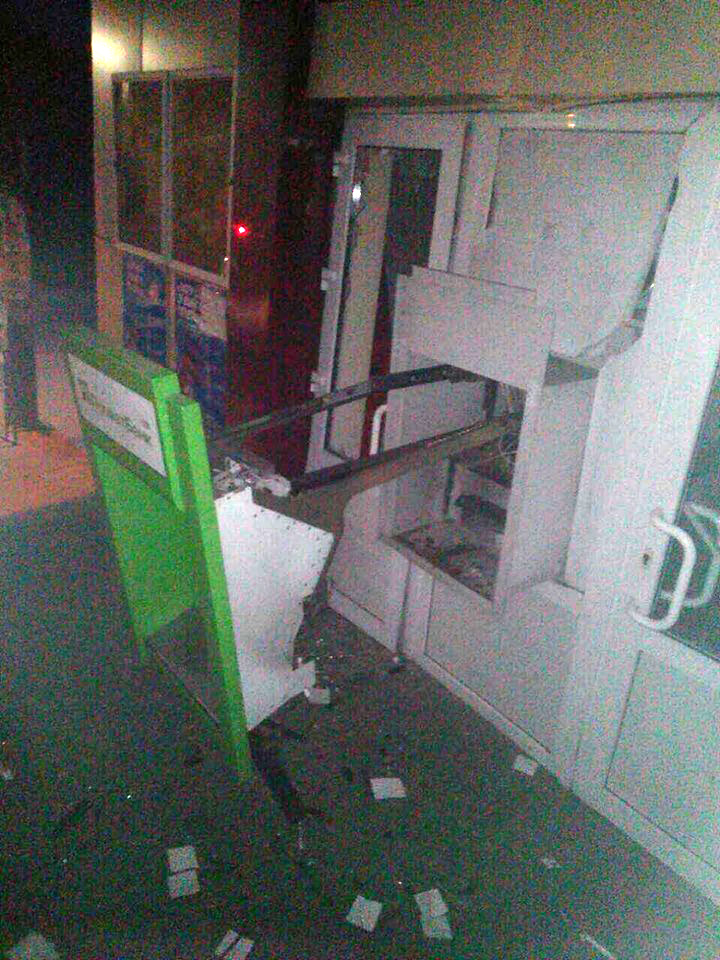 В дежурную часть Харьковского отдела полиции поступило сообщение от дежурного по железнодорожной станции «Октябрьская». Он рассказал, что в поселке Высокий возле магазина трое неизвестных в камуфляжной форме неустановленным взрывным устройством повредили банкомат и украли деньги.