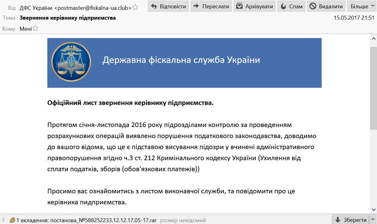 В сети показали пример письма, с помощью которого хакеры во вторник, 27 июня, атаковали компьютерные сети в Украине.