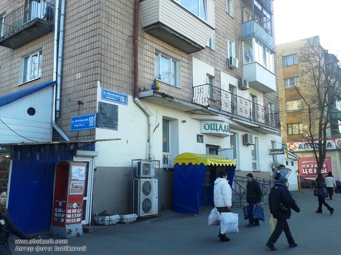 Табличка висела на фасаде дома по адресу проспект Московский, 190/1, возле станции метро «Дворец спорта» (до переименования — «Маршала Жукова») и проспекта Петра Григоренко (бывший проспект Маршала Жукова).