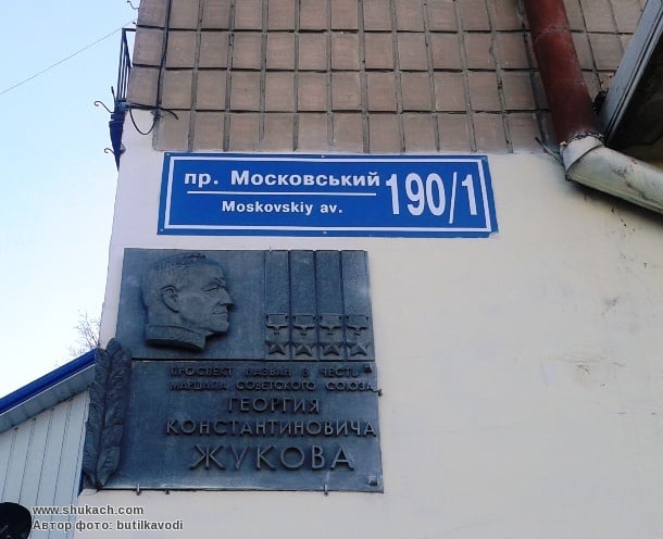С многоэтажки возле станции метро «Дворец спорта» убрали барельеф Жукову, в честь которого до переименования назывался проспект, пролегающий в Слободском и Немышлянском районах. Одновременно доска служила указателем.