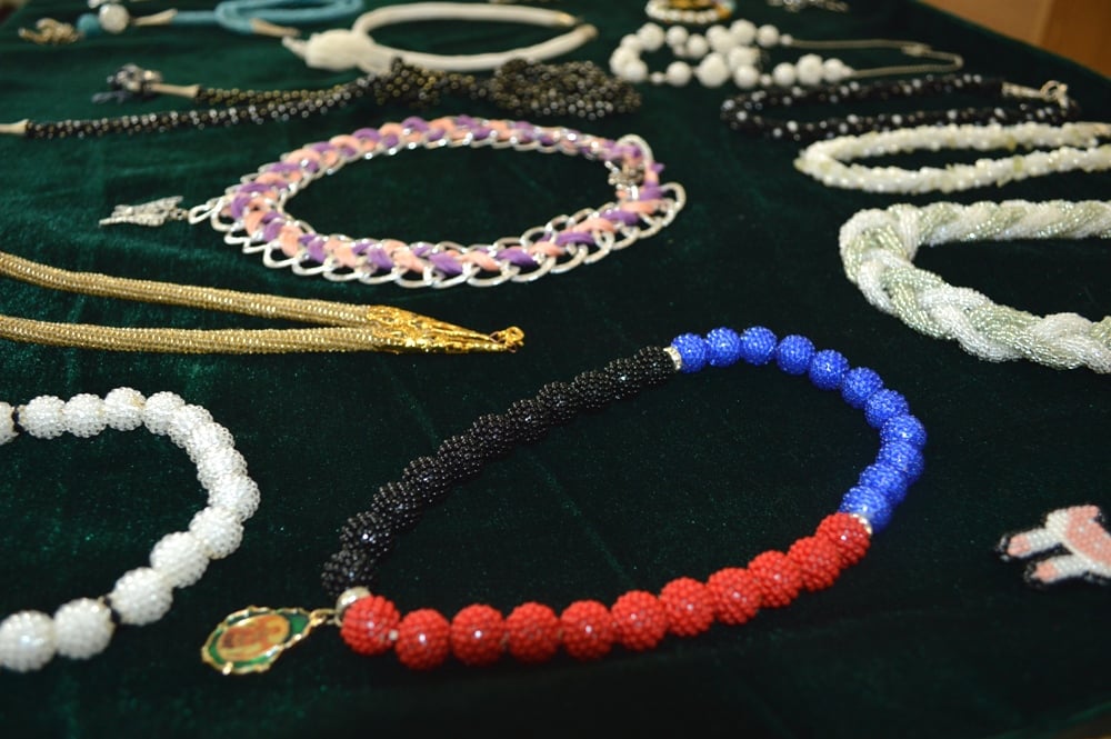 Отмечается, что на выставке было представлено 14 картин и более 50 украшений и сувениров из бисера.