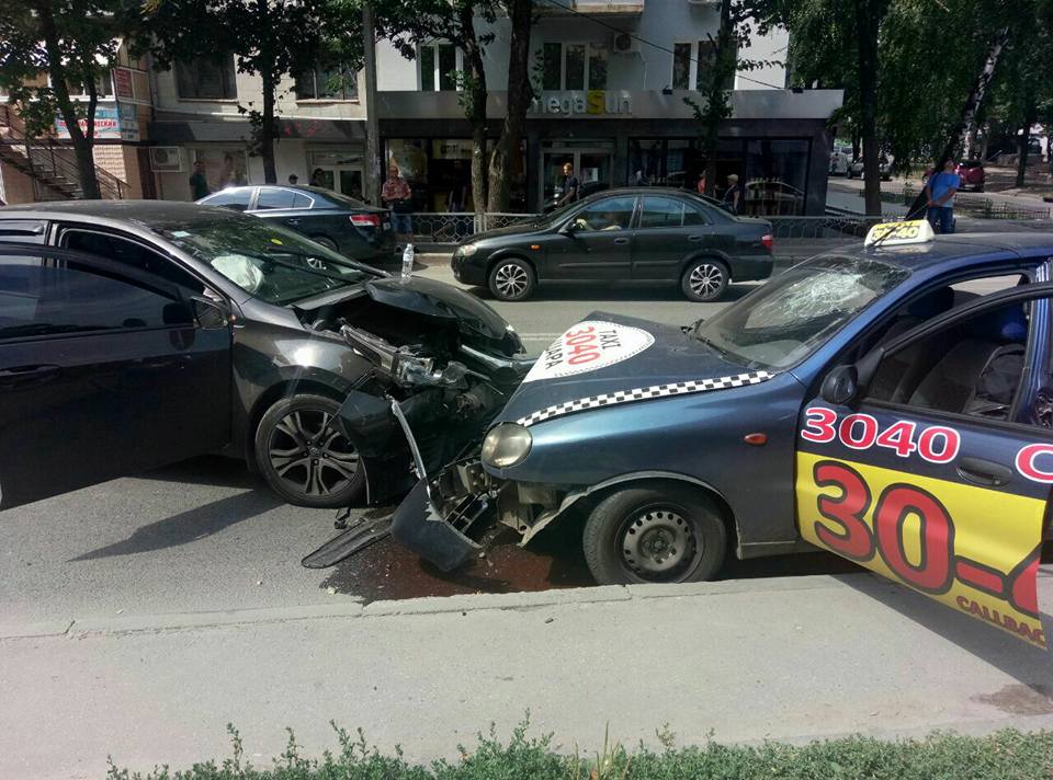 Как сообщили в пресс-службе патрульной полиции города, водитель автомобиля Daewoo Lanos, одной из службы такси города, двигался по улице Отакара Яроша со стороны улицы Деревянко в направлении проспекта Науки.