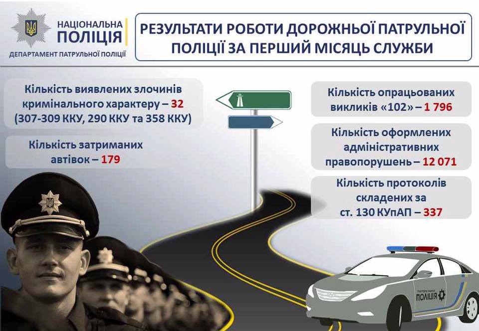 Від початку роботи дорожньої поліції її працівники оформили 12 071 адміністративне правопорушення. Серед них – 337 фактів керування транспортними засобами у стані сп’яніння.
