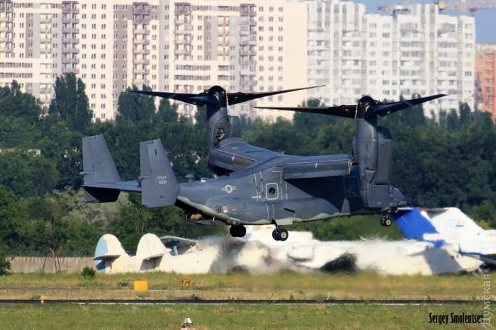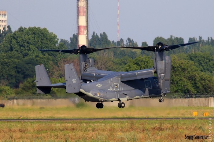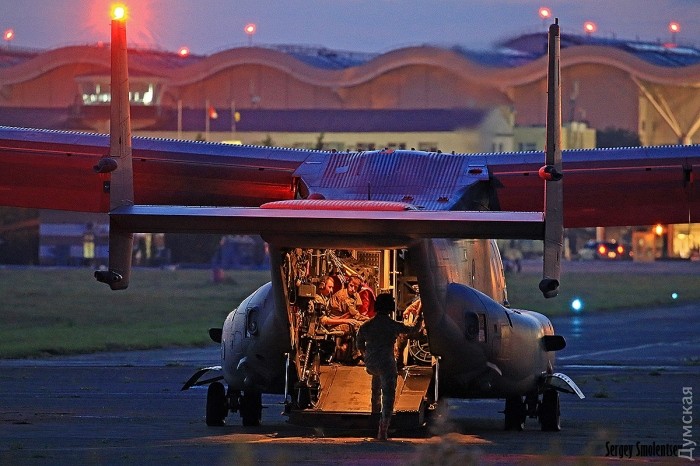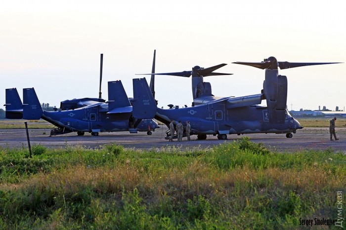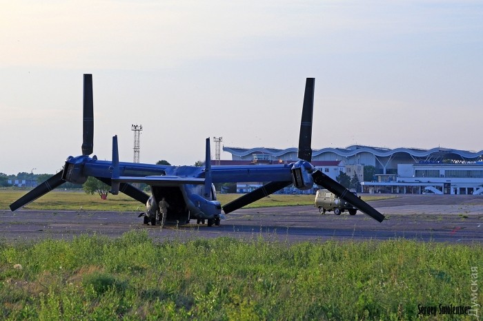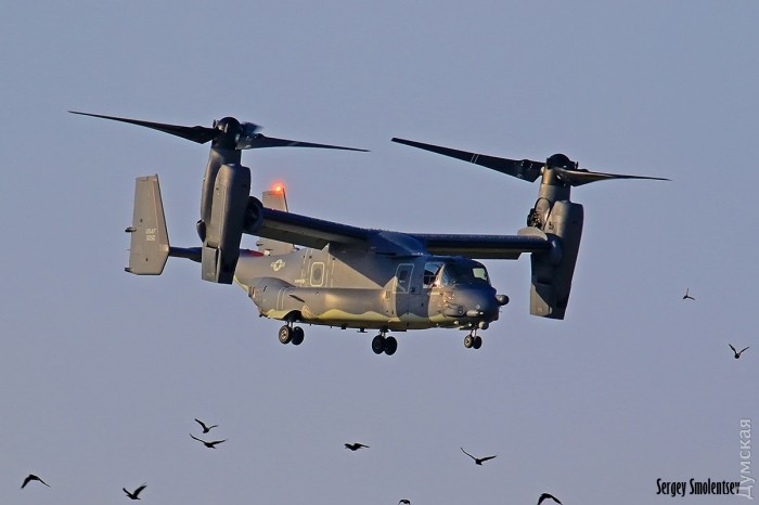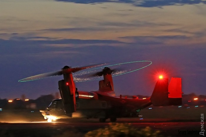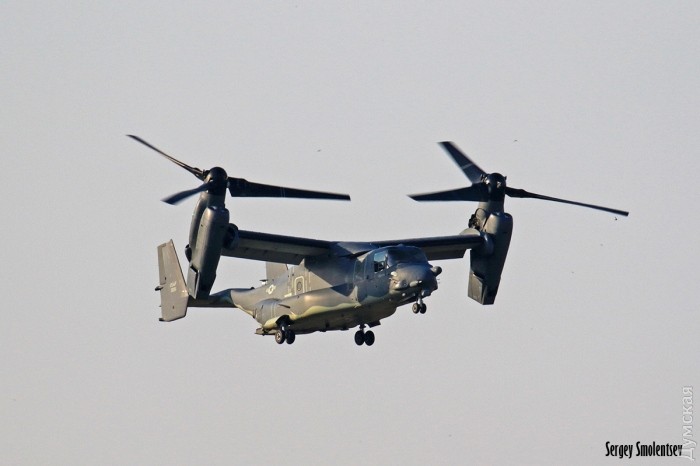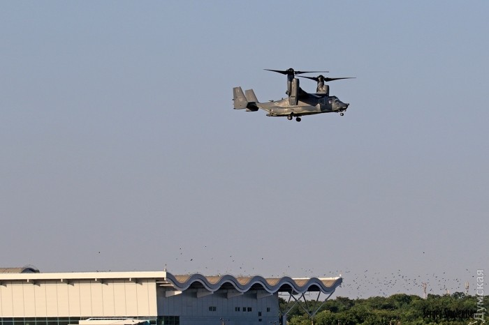 В Одессе приземлились на дозаправку два новых для Украины летательных аппарата Bell V-22 Osprey, сообщает "Думская".