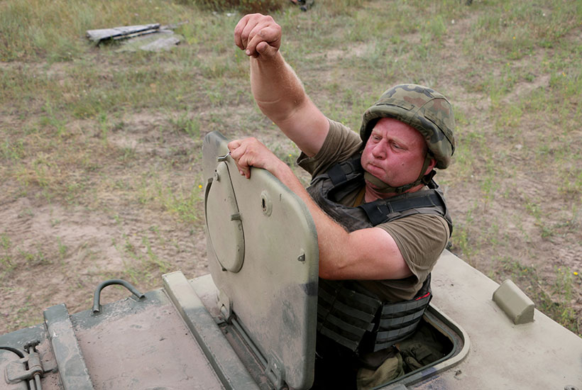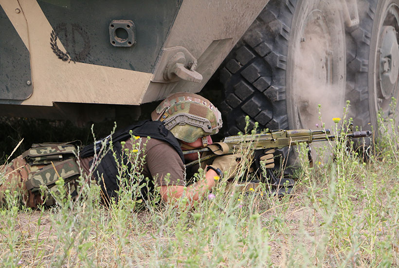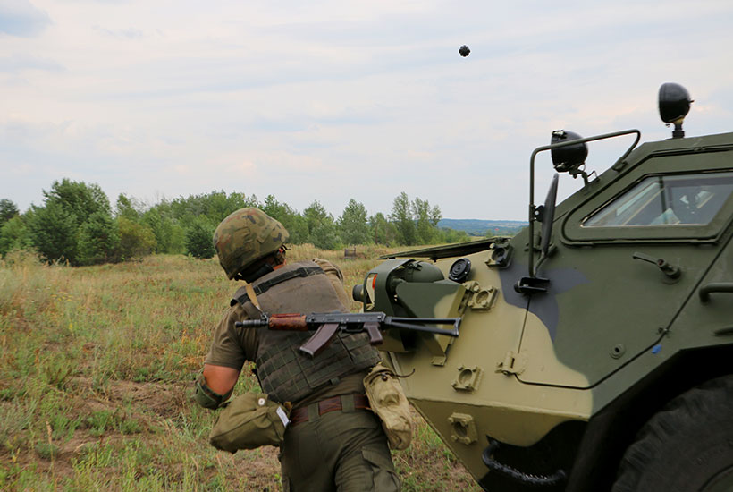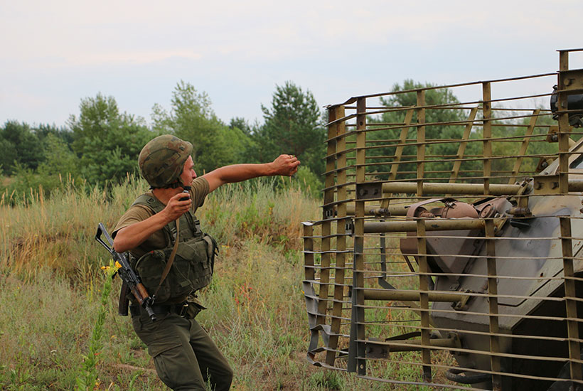 Наступне завдання виконує навідник-оператор, який за командою командира екіпажу кидає гранату по групі піхоти з люка бронетранспортера.