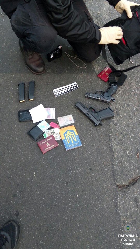 У салоні авто Dacia Logan перебували 2 чоловіків. В одного з них під час поверхневої перевірки виявили 2 предмети, схожі на пістолети, а також понад 50 набоїв.