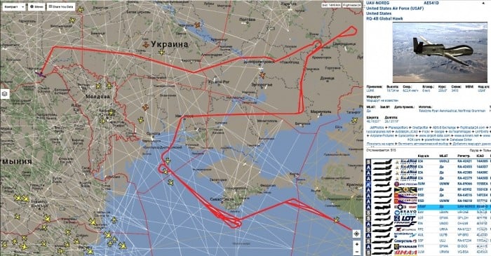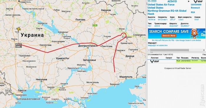 16 июля американский беспилотный стратегический разведчик RQ-4 Global Hawk проинспектировал линию нашего противостояния с агрессором — от южного берега Крыма через Очаков и Мариуполь до Славянска.