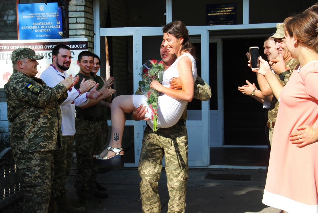 Це справжнє військове весілля в Авдіївці. Надзвичайно скромне, але зі смаком, інакше у прифронтовій зоні не буває.