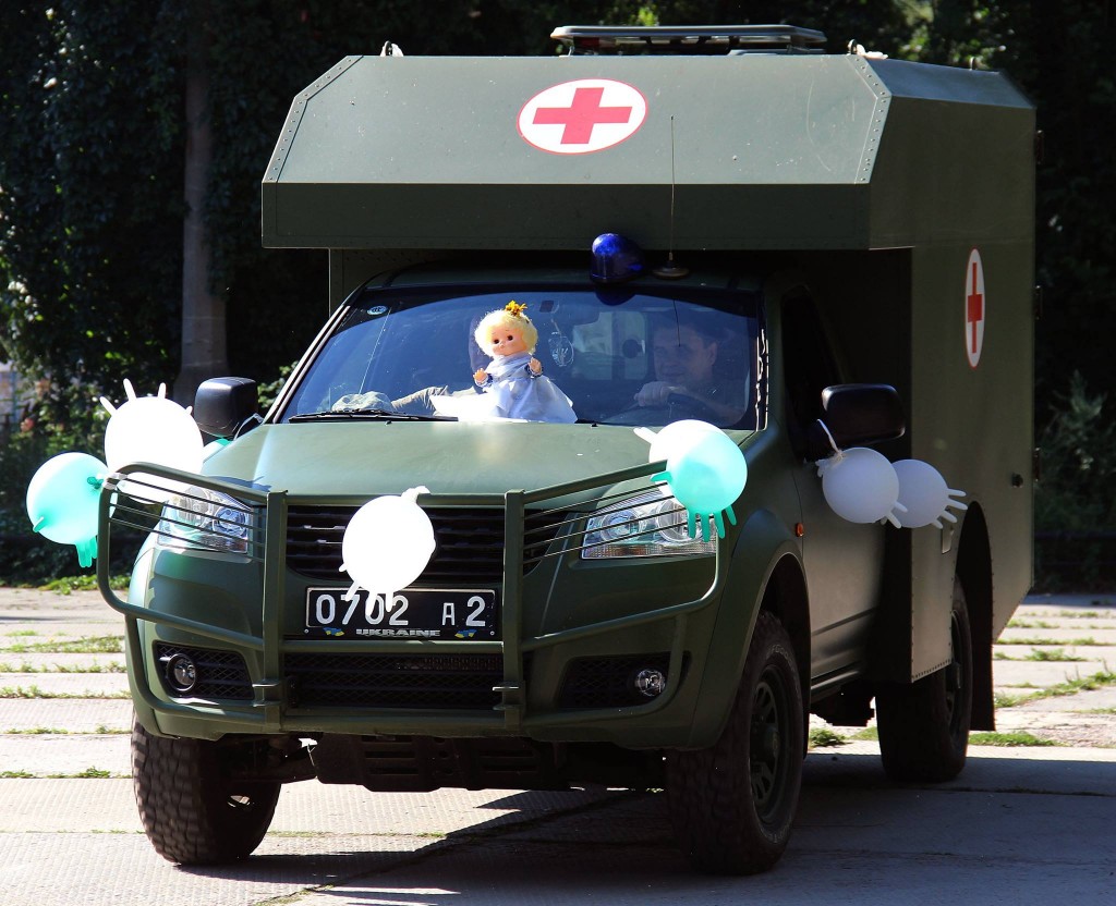 Кілька санітарних автомобілів, прикрашені кульками і надутими медичними рукавичками повезли наречених вулицями Авдіївки – кількасот метрів від місця реєстрації до – частини. За цим неординарним дійством спостерігали мешканці містечка. Хтось махав руками, хтось вітав посмішками, а одна бабця навіть заплакала…