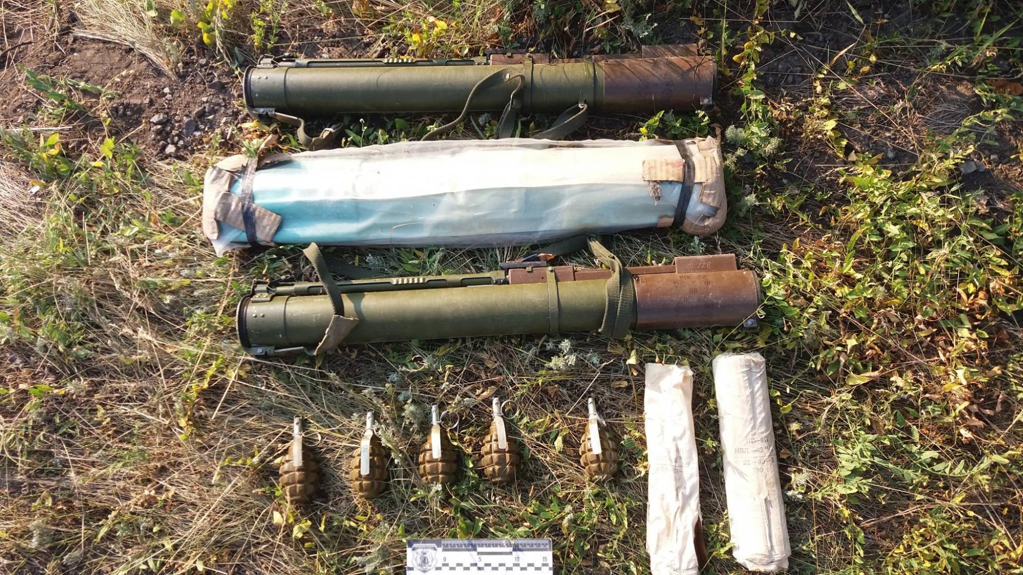 В ході огляду місця події поліцейські виявили та вилучили три гранатомети «РПГ-22», п’ять гранат «Ф-1», 1,5 кг пороху та 283 патрони калібру 7,62 мм.