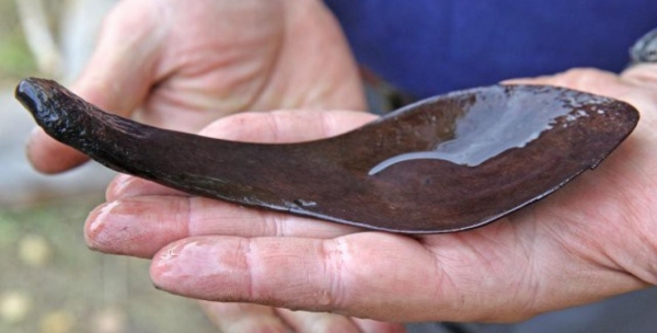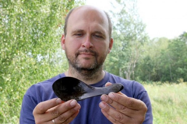 Как рассказал старший научный сотрудник Института истории НАН Беларуси Максим Чернявский, ложка сделана из кости животного, скорее всего, из тазовой части.