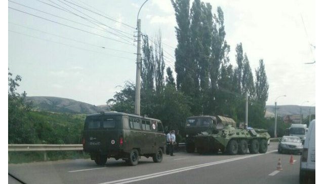 Как сообщили очевидцы аварии, в районе села Перевальное дорогу «не поделили» военный КамАЗ и БТР.
