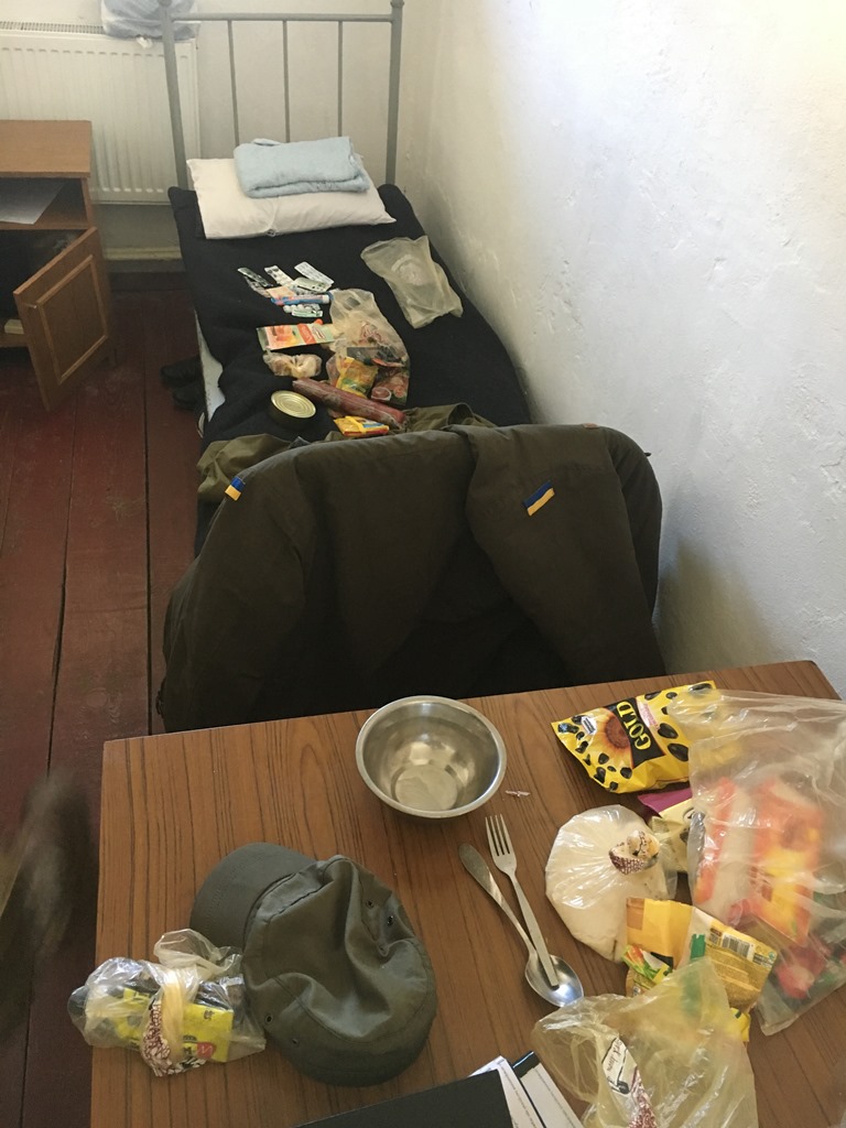 Більше того, не обладнане місце для виконання фізичних вправ. Заарештовані військовослужбовці харчуються в загальній їдальні військової частини. Це при тому, що в приміщенні гауптвахти є їдальня і відповідне майно для забезпечення прийому їжі.