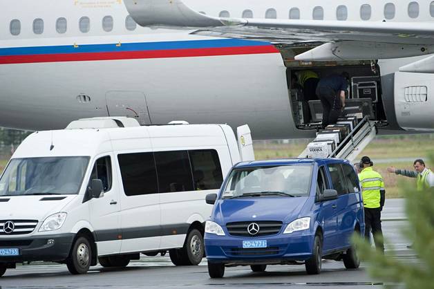 Финский фотограф Ари Накари смог запечатлеть, как в самом конце визита Владимира Путина в Финляндию команда загружает на борт самолета президента России Владимира Путина ящики с водкой Koskenkorva и элитным коньяком.