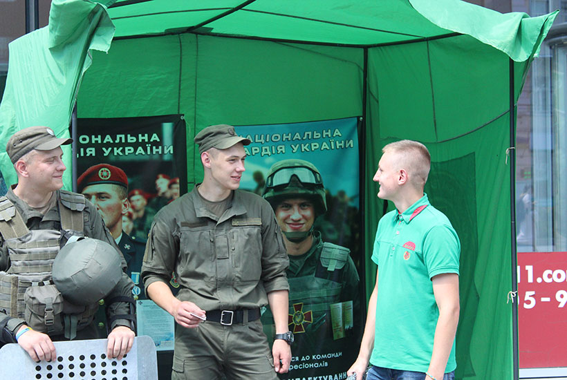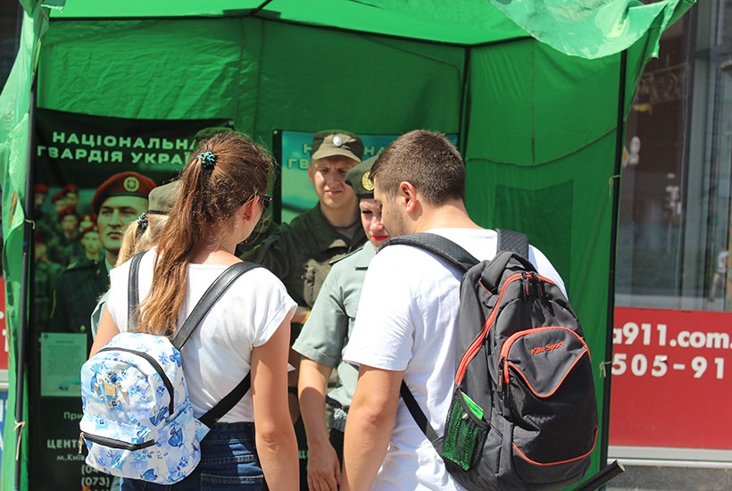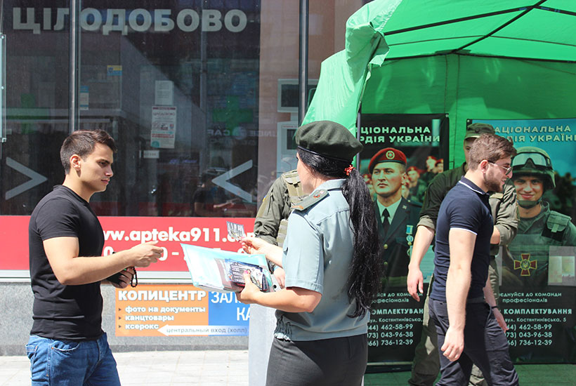 «Агітація є невід’ємним та важливим моментом в нашій діяльності, оскільки саме завдяки їй громадяни дізнаються про пріоритети військової служби за контрактом, про місце Національної гвардії України в структурі правоохоронних органів держави, про діяльність, здобутки та перспективи військового формування, - розповідає лейтенант Карина Чуканівська, - а це важливо і для людей, і для іміджу Національної гвардії України».