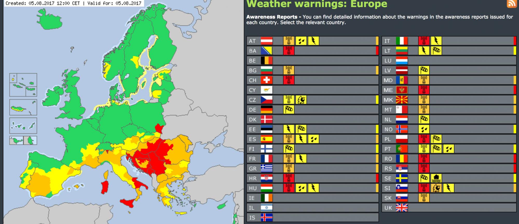 В десяти странах Европы из-за аномально высокой температуры объявлен «красный» уровень опасности. Об этом сообщается на сайте сети метеослужб Eumetnet.
