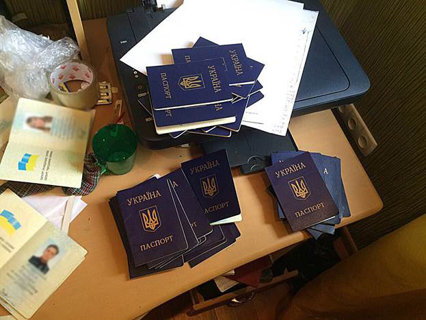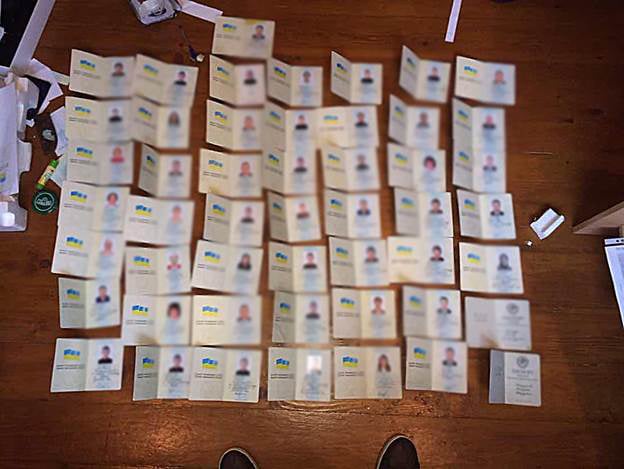 Під час проведення санкціонованих обшуків працівники Генеральної прокуратури України, оперативники Департаменту захисту економіки та слідчі ГСУ Нацполіції вилучили вогнепальну та холодну зброю: автомати та пістолети, майже 1,5 тисячі набоїв до неї, мисливські ножі. 57 підроблених паспортів, серед яких паспорти з однаковими фотокартками або взагалі без них, 130 ксерокопій паспортів, підроблені посвідчення працівників правоохоронних органів, банківські картки, інструкції з алгоритмом дій, чорнові записи та комп'ютерну техніку. Серед виявлених паспортів і документи на ім'я високопосадовців.