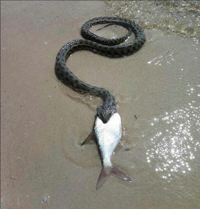 В Днепре на пляже обнаружили змею, вцепившуюся зубами в рыбу. Уж притащил свою добычу на берег Воронцовского пляжа. Об этом сообщили очевидцы, передает "Информатор".