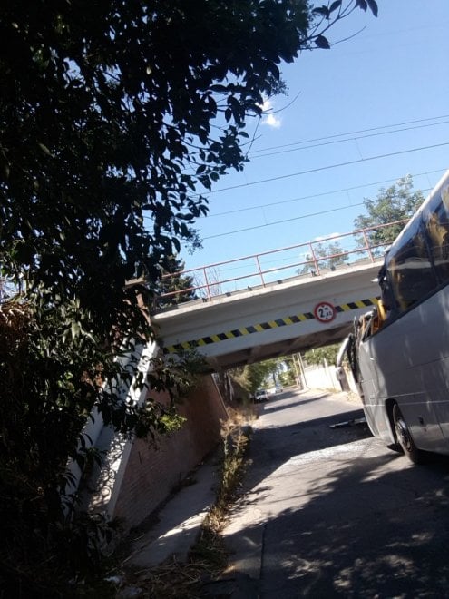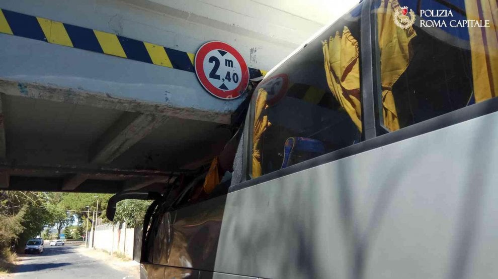 По данным издания, водитель автобуса не заметил дорожный знак, предупреждающий об ограничении высоты проезда транспортных средств выше 2,4 м, который был установленный на мосту Roma-Lido.