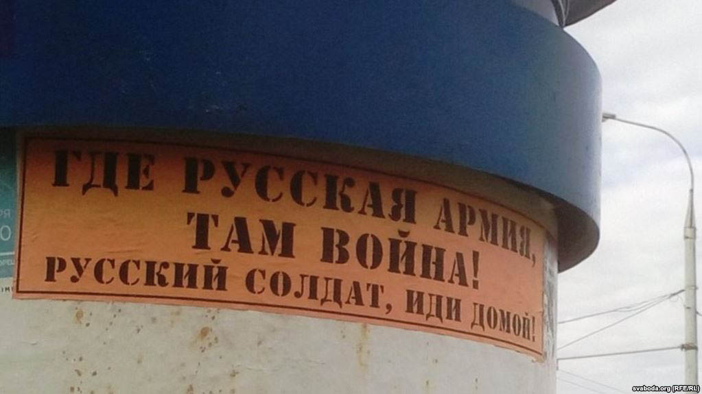 На плакатах, которые появились в Бресте, написано «Где российская армия, там война», а также «Российский солдат, иди домой».