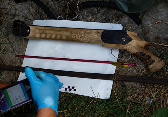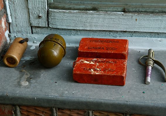 Під час огляду сумки правоохоронці виявили 2 тротилові шашки, гранату «РГД-5» із запалом до неї, 3 револьвери, мисливську рушницю, саморобнийарбалет та 162 патрони різного калібру.