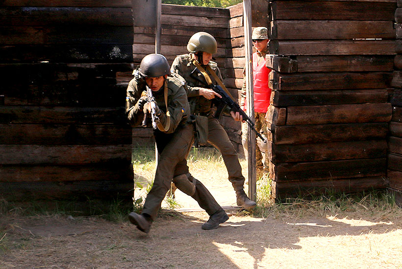 Сьогодні тут відпрацьовували підхід до будівлі, зачистку коридору, вхід у кімнату та зачистку кімнат. Все це під керівництвом інструкторів, які пройшли спеціальну підготовку. Допомагають їм і воїни із зони АТО, які також діляться досвідом з молодими офіцерами.