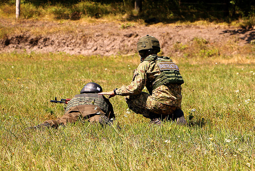 «На даному полігоні ми відпрацьовуємо їх злагодження в групах. Ми збиваємо їх в групи, потім уже в відділення. Кожен офіцер відповідає за свою “двійку”. Він є ведучий номер, його напарник відомий», – розповідає інструктор Руслан Гапоненко.