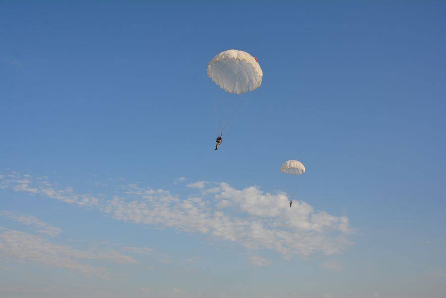 Проведення парашутних стрибків проводиться злагоджено, у максимально швидкому темпі, починаючи з самого ранку – з огляду на мінливу погоду і вітер, що посилюється до середини дня. Мінлива вітряна погода в місці проведення стрибків вимагає майстерності як екіпажу вертольота, так і десантників, які повинні вміти визначити напрям вітру під час зниження, відповідно виконати розворот, впевнено діяти під час приземлення, а у випадку сильного вітру – вміти правильно «погасити» купол на землі, користуватися «м’яким замком» для екстреного «гасіння» купола.