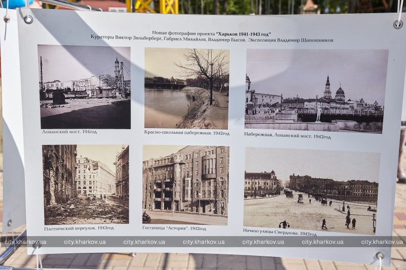 Так, в честь 74-й годовщины освобождения Харькова от нацистских захватчиков на выставке презентовали фотографии города 1942-1943 годов, приобретенные из частных коллекций на аукционе в Германии. Это новые ракурсы центральных улиц города, Успенского собора и Благовещенского храма, а также уникальные снимки тех мест, которые не были представлены ни в фотоальбомах, ни на предыдущих выставках.